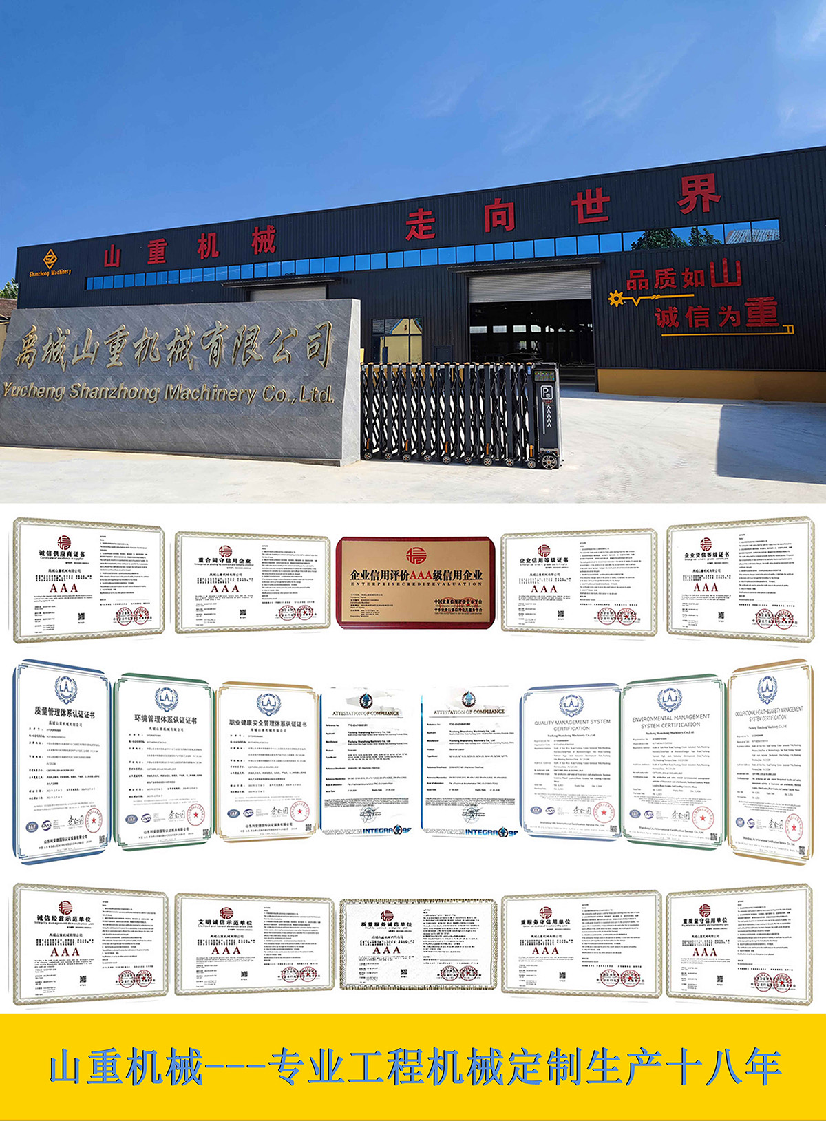 Yucheng Shanzhong Machinery Co., Ltd. is a professional manufacturer specializing in R & D and production of Wheel Excavators, Crawler Excavators, Wheel Loaders, Backhoe Loaders, Mobile Self-Loading Concrete Mixers, Amphibious Excavator and auxiliary attachments for excavators.